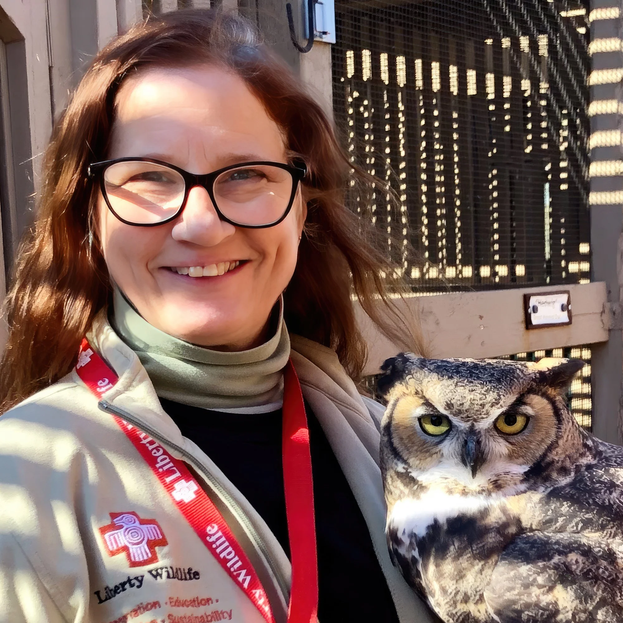 Liberty Wildlife will do that to you. The woman who once feared both birds AND reptiles, including snakes, now handles them regularly and with confidence. She has hand-fed raptors, worked with Dubia roaches, and once held a tarantula — voluntarily. The birds get thick leather gloves though. Those talons are no joke.